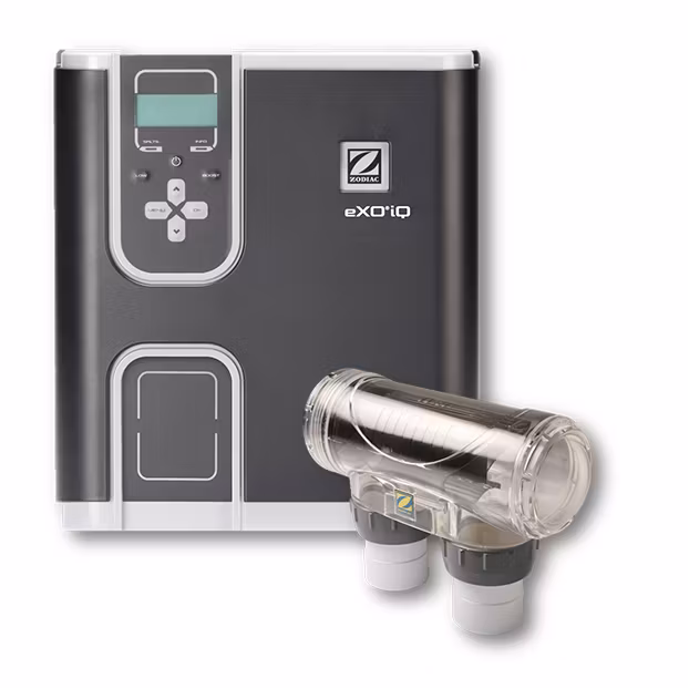 Saltklorinatorn eXO iQ styrs enkelt via din smartphone med sin inbyggda WiFi modul. Genom gratisappen iAquaLink och pH Link/Dual Link styr du enkelt ph- och klorproduktion. eXO iQ har tre års materialgaranti på